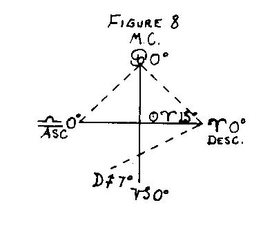 3. When the Moon and the AC are placed within their respective orbs of a degree of the opposite sex (the Moon in a female and the AC in a male or vice versa) the sex of the subject is determined by the quadrant held by the Moon at Epoch. There will then be two points of one sex and one of the other, and whichever sex predominates will be the sex of the subject.