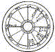 In this figure the planets occur in four groups: Neptune is in conjunction with Mars, Saturn in conjunction with Uranus, Mercury in conjunction with the Sun, and Jupiter in conjunction with the Moon. The last two groups are also squaring each other. Venus is alone and forms a trine to Jupiter. Note also that the Sun is parallel to Neptune and Mercury, and Venus is parallel to Mars.