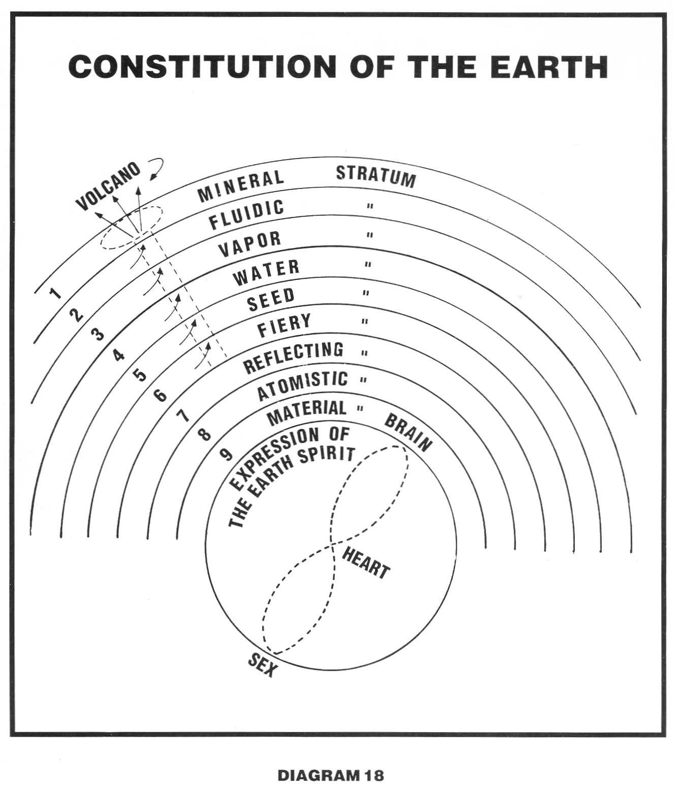 and possible without initiation. Suffice it here to say that there are nine such layers of different thicknesses and that the core forms a tenth part. This is the seat of the consciousness of the Earth-Spirit.