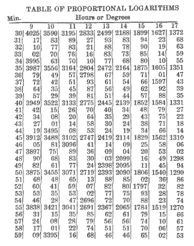 For the convenience of students we give in the back of this book six tables, and each usable for two months in the year by all who live in latitude 25 to 55 North or South, this being practically the whole civilized world. They are perpetual and may be used a lifetime.