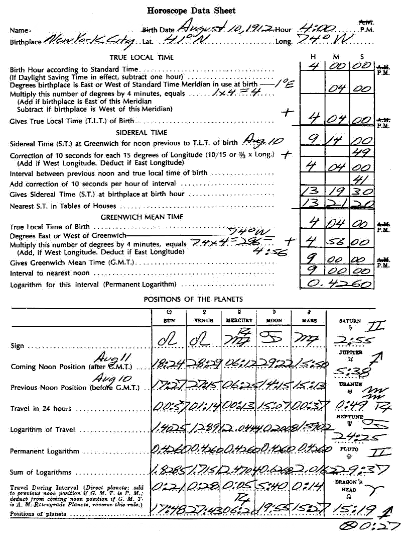 In the last Astrology Independent Study Module we requested you to finish setting up the horoscope on which we had been working previously. Now please state: