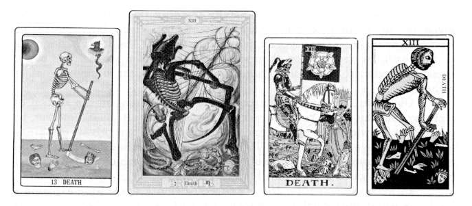 The most ancient form of Teth was the cross, referring to the serpentine fire force which wreathes itself about and through the staff of Hermes. Through the misuse of this fire force, mankind took upon itself "coats of skin," which must be acquired at birth and repeatedly cast off in death until at last the disciple is the Initiate over whom death has no power. He then embodies within himself all the powers of Teth. Mankind is still bound to the cross of the body, awaiting the day of liberation. Christ Jesus, the divine Exemplar, was nailed to the cross and resurrected that all men might learn to follow in His steps.