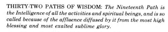 In the kabbalah the ninefold constitution of the universe is reflected in the Sephiroth, with the extra Tenth, and in the ten major vowel sounds (thirteen vowels are named). In the kabbalistic diagram of man's constitution there is a similar triple arrangement of Triads, representing the threefold spirit, the threefold soul, and the threefold body (personality), with the Mind (Hermes) as the crux or crucial point.