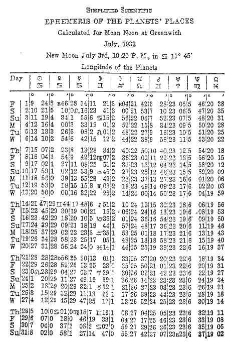 32) Simplified Scientific Ephemeris of the Planets' Places: