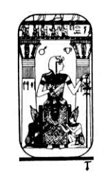 The Third Arcanum is termed the Isis-Urania. Here we see again the beautiful figure of the High Priestess. This time, however, her feet are resting upon the moon. Her body is radiant with the golden nimbus of the sun, and her head is crowned with the glory of twelve stars. She is seated upon a cubic stone which is covered with eyes, and upon which is also inscribed the picture of a cat, the animal that sees both in light and in the dark — the whole a composite symbol of clairvoyance. The Urania holds a scepter which points heavenward. Upon the other hand rests an eagle which represents the power of the New Age. This card is also termed the Venus-Uranis, or Celestial Aphrodite, as shown by the emblem of the planet in the upper left comer.