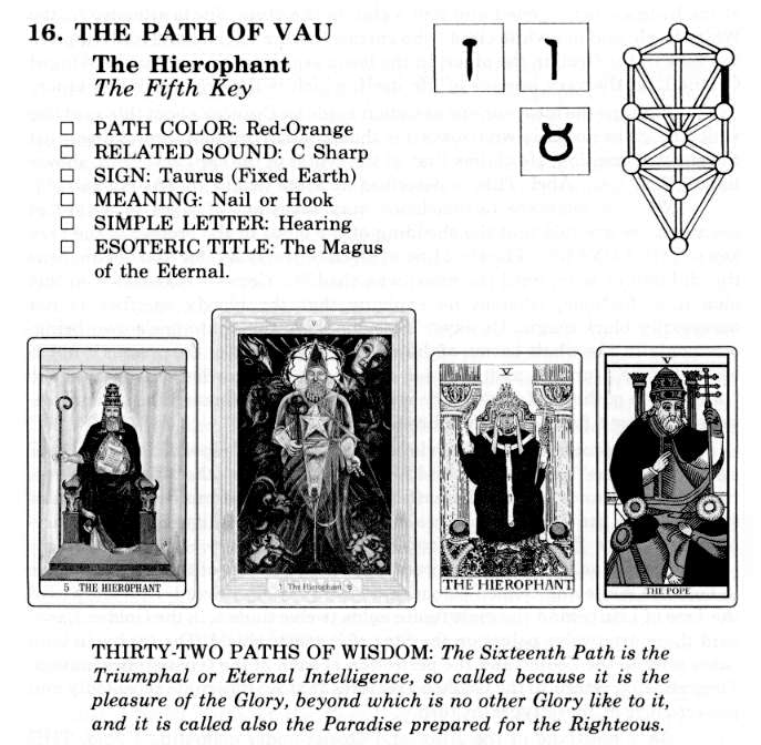 Yod represents the perfected masculine principle of the First Arcane. He typifies the eternal feminine of the Second Arcane. Vav or Vau represents the vessel of transmutation, in which the He, of generation is lifted to become the second or renewed He, the redeemed feminine of regeneration.