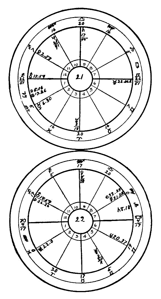The first 22 horoscopes are found on pp. 624-634. (In the original printed version of this book.-Ed.) The last 14 figures are attached to their respective readings.