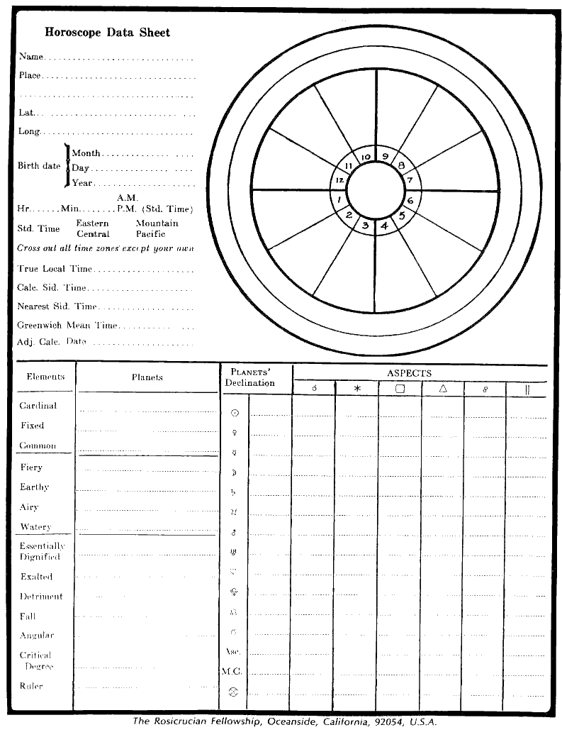 Horoscope Data Sheet
