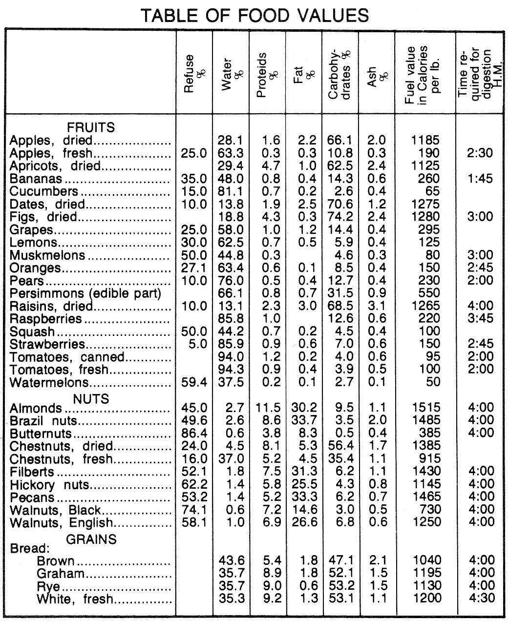 Nutritive Values of the Edible Part of Foods (USDA) Part 2 of 2 »