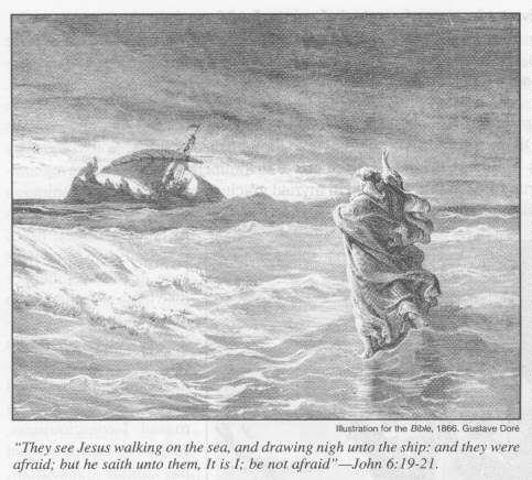 While His disciples foundered at night on the Sea of Galilee, as the boat of their soul bodies was tossed by the waves of emotion in the desire world, Christ walked on the water toward them, in command of the forces of that realm, and they were doubly afraid. But He comforted their souls, "It is I; be not afraid" (6:20): The impersonal I can and does quiet the emotional tempest that constantly threatens to capsize and inundate the unseaworthy personal ego.
